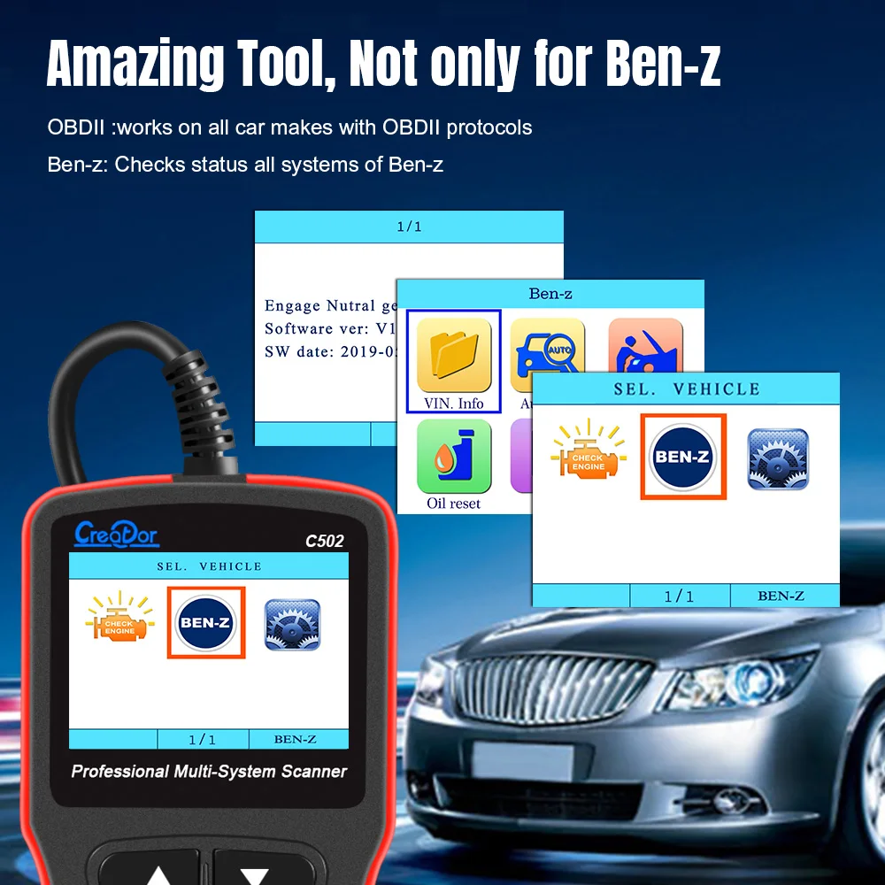 #creator #diagnostic #tools #mercedes #scanner #support #airbag #diagnostic #scanner. Creator C502 OBD2 Diagnostic Tools For W203 Mercedes Benz W211 OBD2 Scanner Support ABS Airbag OBD 2 Auto Diagnostic Scanner.